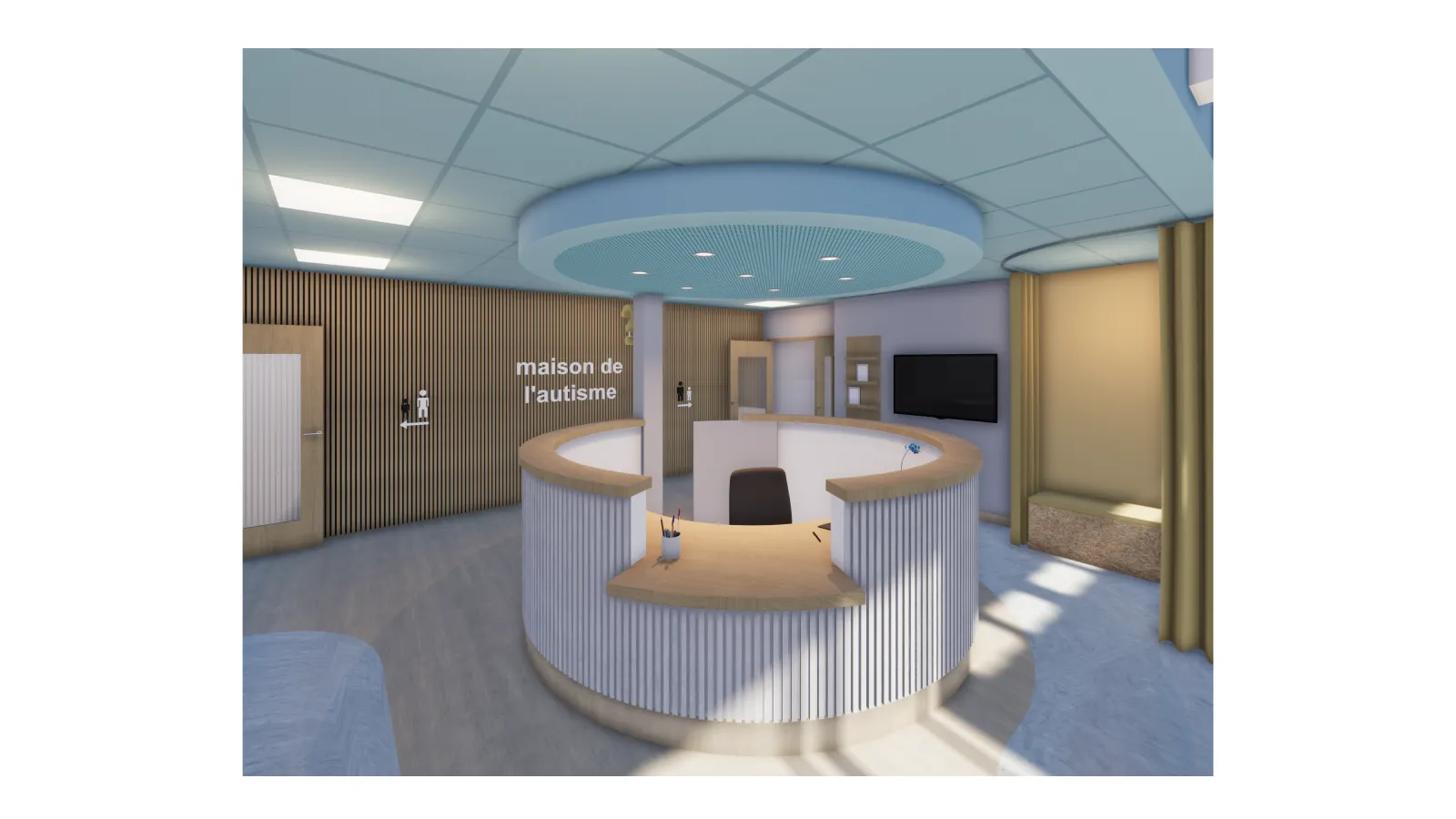Notre conception est guidée par le principe de mise en adéquation du programme avec les besoins d’une mixité d’usagers. La praticité et la fonctionnalité des espaces répondent aux attentes des personnes autistes, de leurs proches, ainsi que des professionnels qui gravitent autour de leur accompagnement. Notre proposition architecturale a aussi un rôle symbolique. Il s’agit d’offrir une identité forte à ce lieu unique dans le Limousin au service de l’autisme et des TND. La matérialité et les gammes de couleur sont l’identité de La Maison de l’Autisme à l’échelle nationale. Nous proposons que ces lieux symboliques aient leur design, leur identité matérielle propre pour qu’ils soient des repères spéciaux, architecturaux pour les acteurs de l’autisme et des TND.